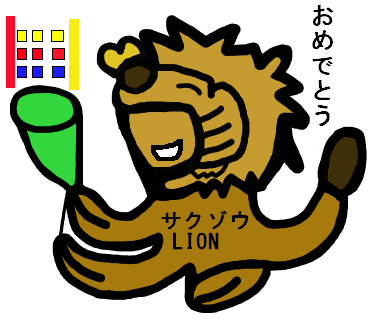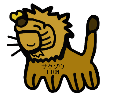 ![]() サクゾウライオン サクゾウライオンの絵を 描いて作成するのが 難しかったのです。 |