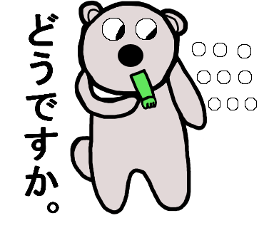 ![]() ホワグート(白グマ) 自分でイラスト画像を 見比べながら作成して 良い絵が出来て 良かったと思いました。 |